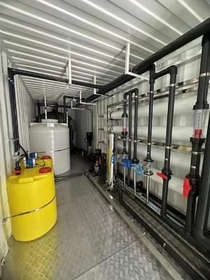 Raw water → raw water tank (user self-provided) → raw water pump → multi-media filter → activated carbon filter → precision filter → reverse osmosis device → pure water storage tank (user self-provided)